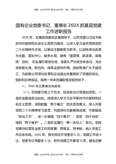 202X年国有企业党委书记,董事长抓基层党建工作述职报告.docx
