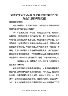 集团党委关于2025年党建品牌创建与业务融合发展的专题汇报.docx