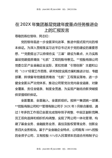 在202X年集团基层党建年度重点任务推进会上的汇报发言.docx