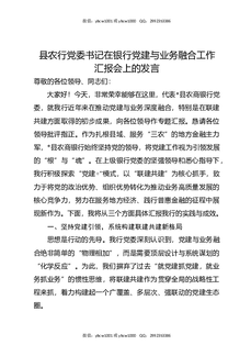 县农行党委书记在银行党建与业务融合工作汇报会上的发言.docx