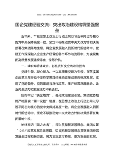 国企党建经验交流:突出政治建设构筑坚强堡垒.docx