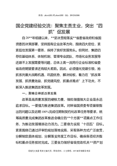 国企党建经验交流:聚焦主责主业,突出“四抓”促发展.docx