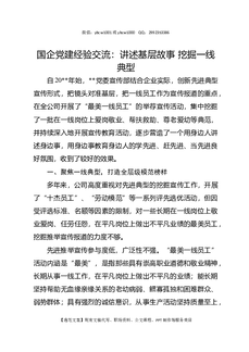 国企党建经验交流:讲述基层故事挖掘一线典型.docx