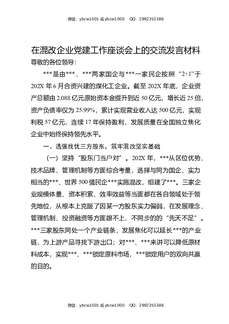 在混改企业党建工作座谈会上的交流发言材料.docx