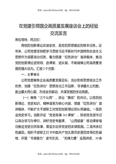 在党建引领国企高质量发展座谈会上的经验交流发言.docx