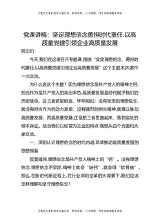 党课讲稿:坚定理想信念勇担时代重任,以高质量党建引领企业高质量发展.docx