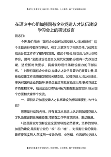 理论中心组加强国有企业党建人才队伍建设学习会上的研讨发言.docx