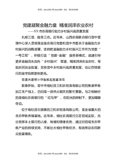XX市农商银行助力乡村振兴高质量发展:党建凝聚金融力量,精准润泽农业农村.docx