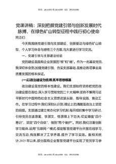 党课讲稿:深刻把握党建引领与创新发展时代脉搏,在绿色矿山转型征程中践行初心使命.docx