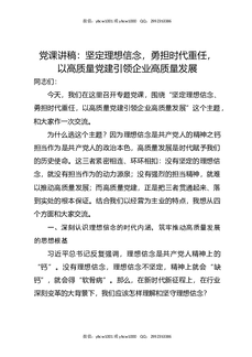 党课讲稿:坚定理想信念,勇担时代重任,以高质量党建引领企业高质量发展.docx