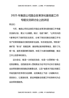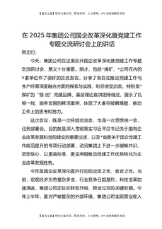 在2025年集团公司国企改革深化暨党建工作专题交流研讨会上的讲话.docx