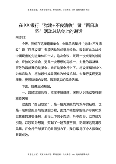 在XX银行“党建,不良清收”暨“百日攻坚”活动总结会上的讲话.docx