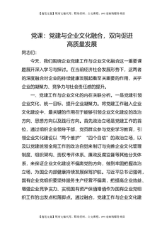 党课:党建与企业文化融合,双向促进高质量发展.docx