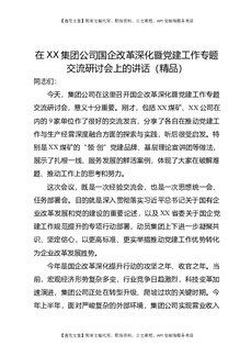 在XX集团公司国企改革深化暨党建工作专题交流研讨会上的讲话(精品).docx