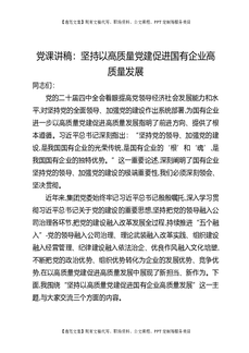 党课讲稿:坚持以高质量党建促进国有企业高质量发展.docx
