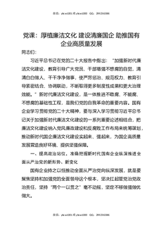 党课:厚植廉洁文化,建设清廉国企,助推国有企业高质量发展.docx