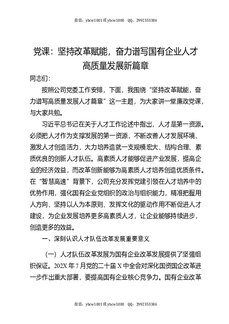 党课:坚持改革赋能,奋力谱写国有企业人才高质量发展新篇章.docx