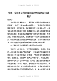 党课:全面落实党对国资国企全面领导的实践要求.docx