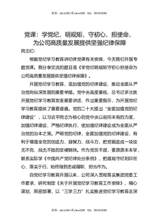 党课:学党纪,明规矩,守初心,担使命,为公司高质量发展提供坚强纪律保障.docx