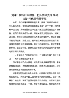 党课:树标杆当榜样,打头阵当先锋,争做新时代优秀党员干部.docx