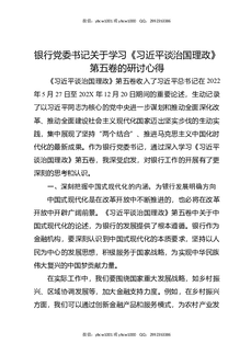 银行党委书记关于学习《总书记谈治国理政》第五卷的研讨心得(2).docx