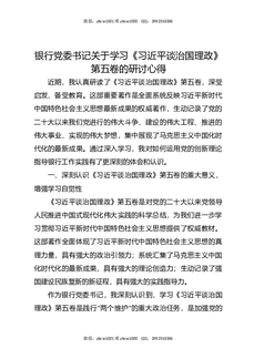 银行党委书记关于学习《总书记谈治国理政》第五卷的研讨心得3.docx