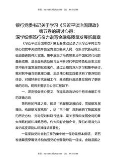 银行党委书记关于学习《总书记谈治国理政》第五卷的研讨心得2.docx