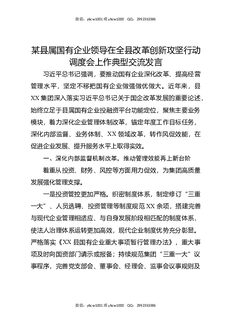 某县属国有企业领导在全县改革创新攻坚行动调度会上作典型交流发言.docx