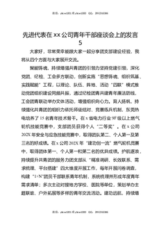 先进代表在XX公司青年干部座谈会上的发言5.docx