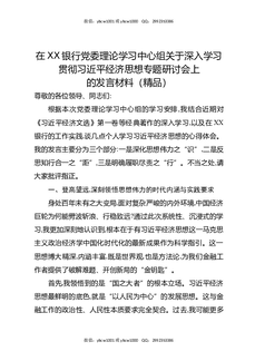 在XX银行党委理论学习中心组关于深入学习贯彻总书记经济思想专题研讨会上的发言材料(精品).docx