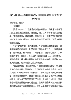 银行领导在清廉家风进万家家庭助廉座谈会上的发言.docx