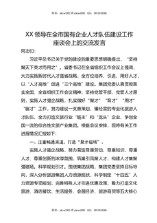 XX领导在全市国有企业人才队伍建设工作座谈会上的交流发言.docx