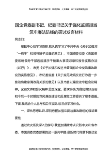国企党委副书记纪委书记关于强化监督担当筑牢廉洁防线的研讨发言材料.docx
