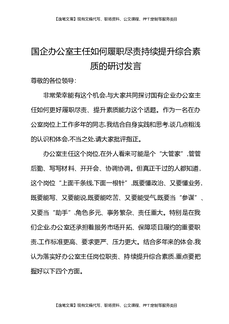 国企办公室主任如何履职尽责持续提升综合素质的研讨发言.docx