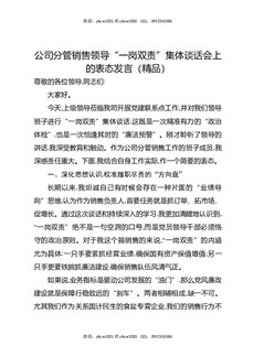 公司分管销售领导“一岗双责”集体谈话会上的表态发言(精品).docx