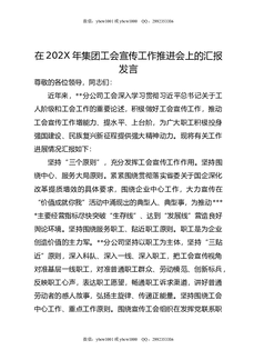 在202X年集团工会宣传工作推进会上的汇报发言.docx