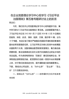 在企业党委理论学习中心组学习《总书记谈治国理政》第五卷专题研讨会上的发言.docx