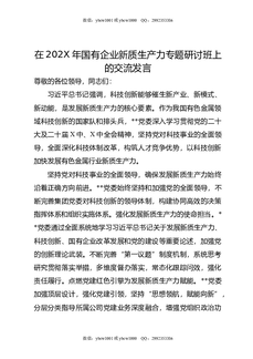 在202X年国有企业新质生产力专题研讨班上的交流发言.doc