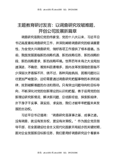 主题教育研讨发言:以调查研究攻破难题,开创公司发展新篇章.docx