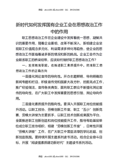 新时代如何发挥国有企业工会在思想政治工作中的作用研讨发言材料.docx