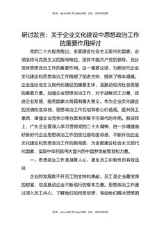 研讨发言:关于企业文化建设中思想政治工作的重要作用探讨.docx