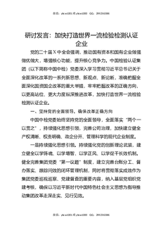 研讨发言:加快打造世界一流检验检测认证企业.docx