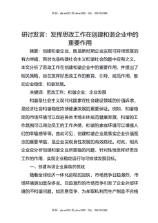 研讨发言:发挥思政工作在创建和谐企业中的重要作用.docx