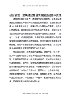 研讨发言:坚决扛起建设清廉国企的主体责任.docx
