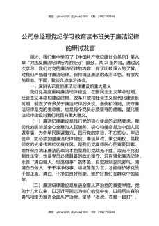 公司总经理党纪XX教育读书班关于廉洁纪律的研讨发言.docx