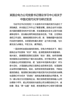 某国企电力公司党委理论学习中心组关于中国式现代化学习研讨发言.docx