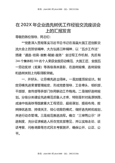 在202X年企业选先树优工作经验交流座谈会上的汇报发言.doc