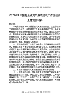 在202X年国有企业党风廉政建设工作座谈会上的发言材料.doc
