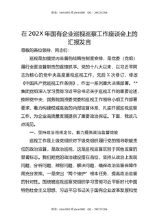 在202X年国有企业巡视巡察工作座谈会上的汇报发言.doc