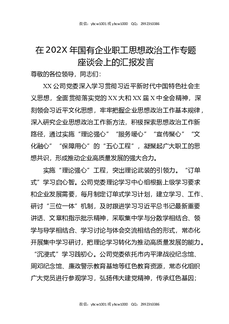 在202X年国有企业职工思想政治工作专题座谈会上的汇报发言.docx